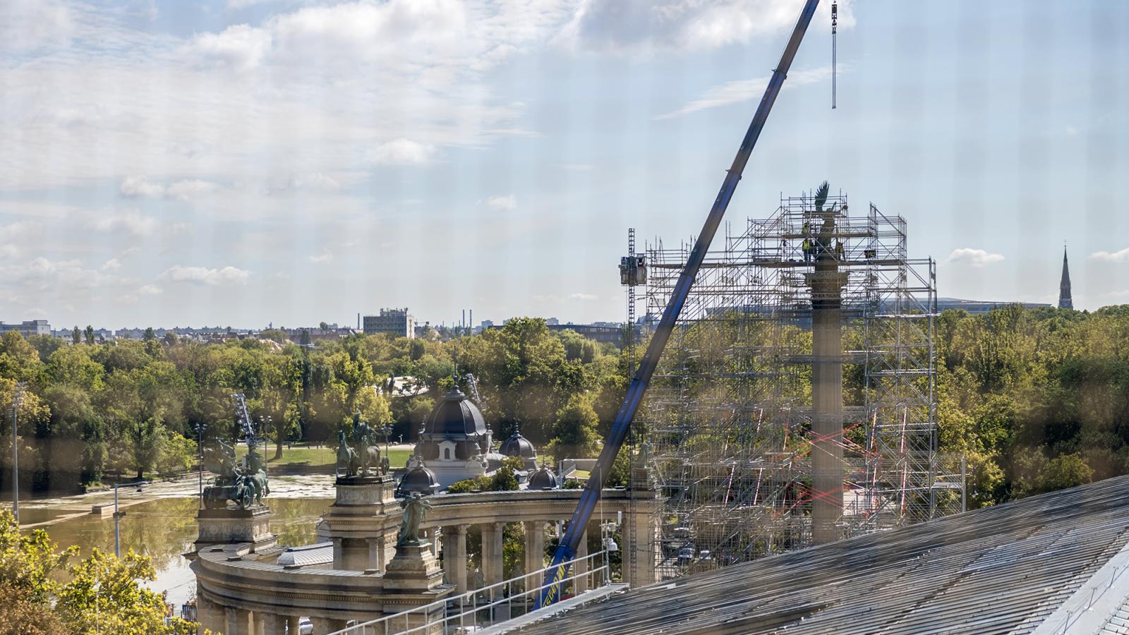 Hősök tere: Gábriel arkangyal szobra a felújítás küszöbén